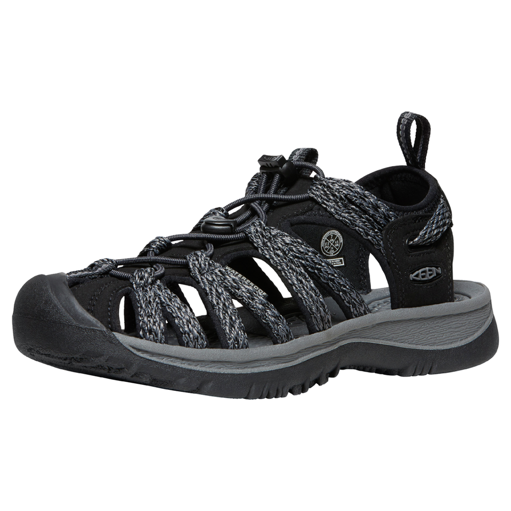Von versteckten Buchten bis hin zu reissenden Flüssen - die Whisper Sandale von KEEN bringt Sie durch jeden mit Wasseraktivitäten ausgefüllten Tag. Das Schnellschnürsystem mit Gummikordel lässt sich so einstellen, dass die Sandale bequem aber sicher sitzt. Das waschbare Obermaterial aus Polyester sowie das geformte EVA-Fussbett bieten unterwegs höchsten Komfort.